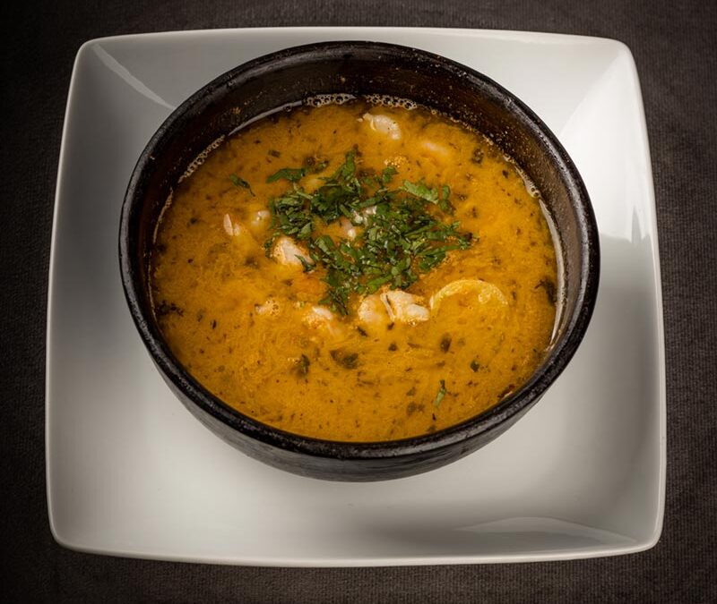 Camarón, ajo, ají y vino.